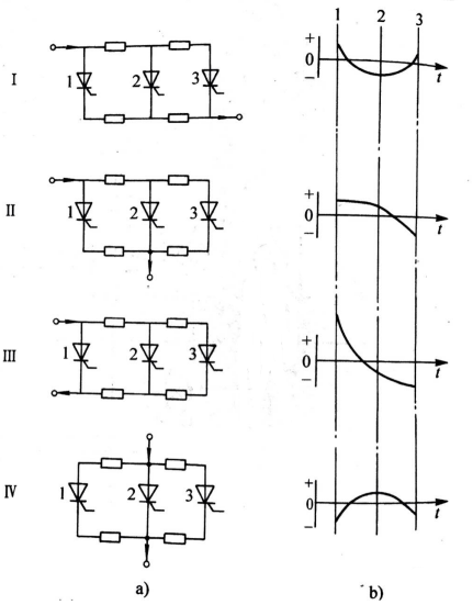 (2)在快恢復(fù)二極管開通前后陽極-陰極間電壓較高、開通后電流上升率較大時(shí),常選用開通時(shí)間盡量一致的快恢復(fù)二極管。但由于快恢復(fù)二極管參數(shù)可選擇的自由度太小,為了經(jīng)濟(jì)和維修更換方便,常和電路補(bǔ)償方法結(jié)合使用。采用補(bǔ)償后能使元件開通時(shí)間的分散度在5~6us左右較合適。補(bǔ)償方法可以在每個(gè)快恢復(fù)二極管支路中串入均流電抗器,或者將整流變卡器代側(cè)線等多分幾組,減少每個(gè)線用支路中的快恢復(fù)二極管數(shù)。